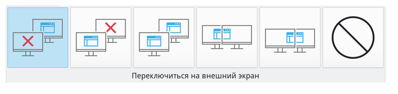 => Требуется выбрать «Дублирование» для отображения одинаковой картинки и на мониторе и на проекторе