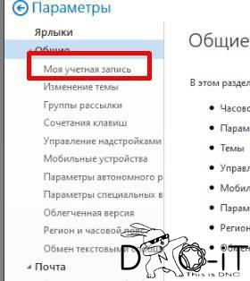 2) Выбрать вкладку «Общие» — > «Моя учетная запись»