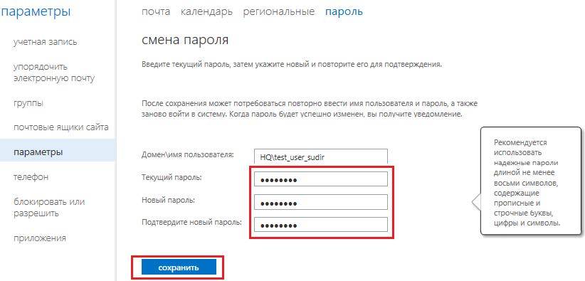 Важно! Обращаем внимание, что после перехода на смену пароля необходимо обязательно пароль изменить. В противном случае доступ к почтовому ящику может будет утерян.