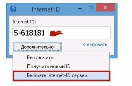 - В открывшемся окне выбрать пункт «Выбрать Internet-ID сервер»