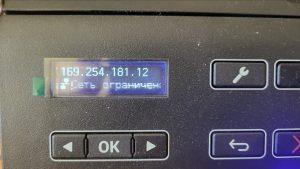 После подключения на дисплее принтера высветился его ip адрес