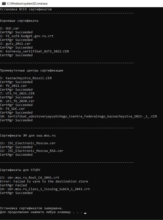В архиве собраны все сертификаты для нормальной работы любого гос сайта в школе. Так же имеются сертификаты для почты owa.mos.ru и wi-fi сети study