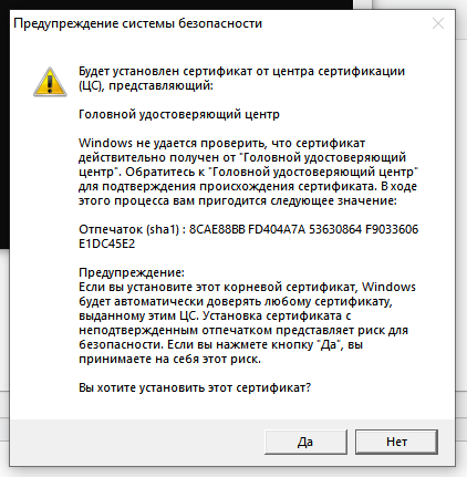 Установка: Запустить файл !! install_cert.bat от пользователя и соглашаться на все :