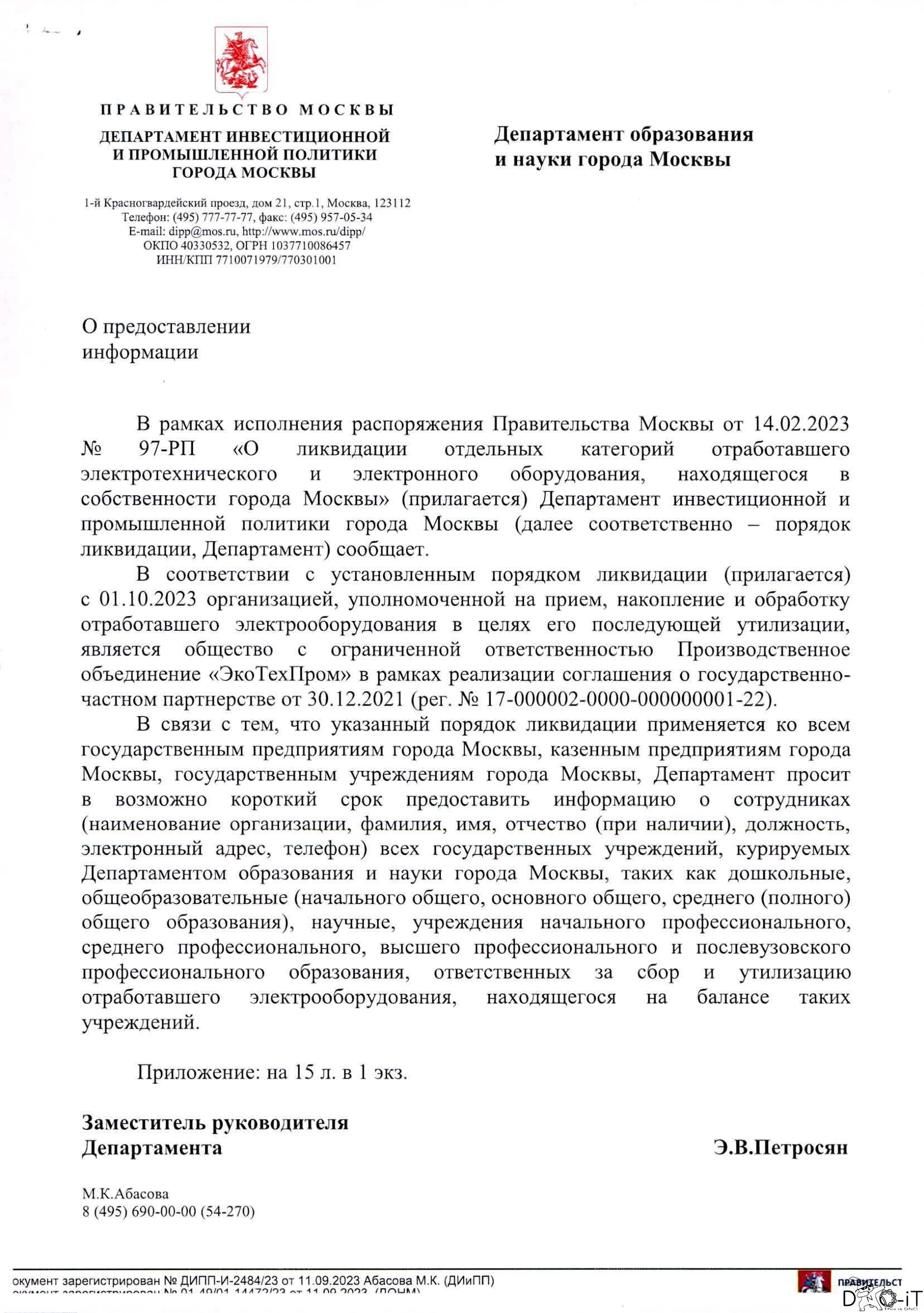 - ДОНМ, О предоставлении информации об организации, уполномоченной на пример, накопление обработку списания