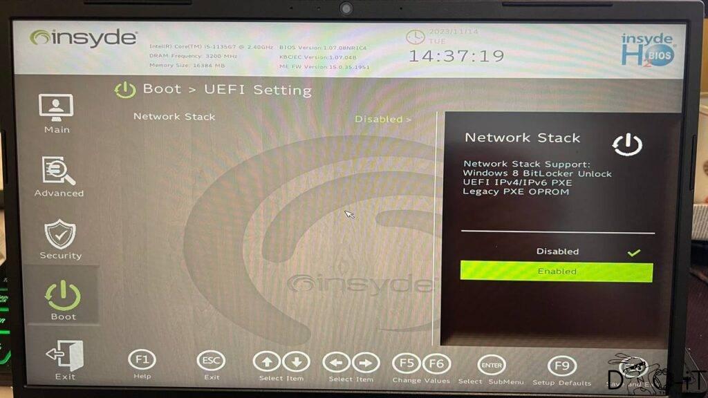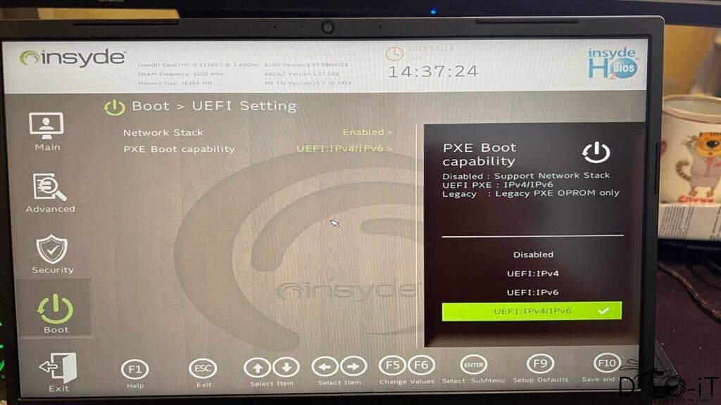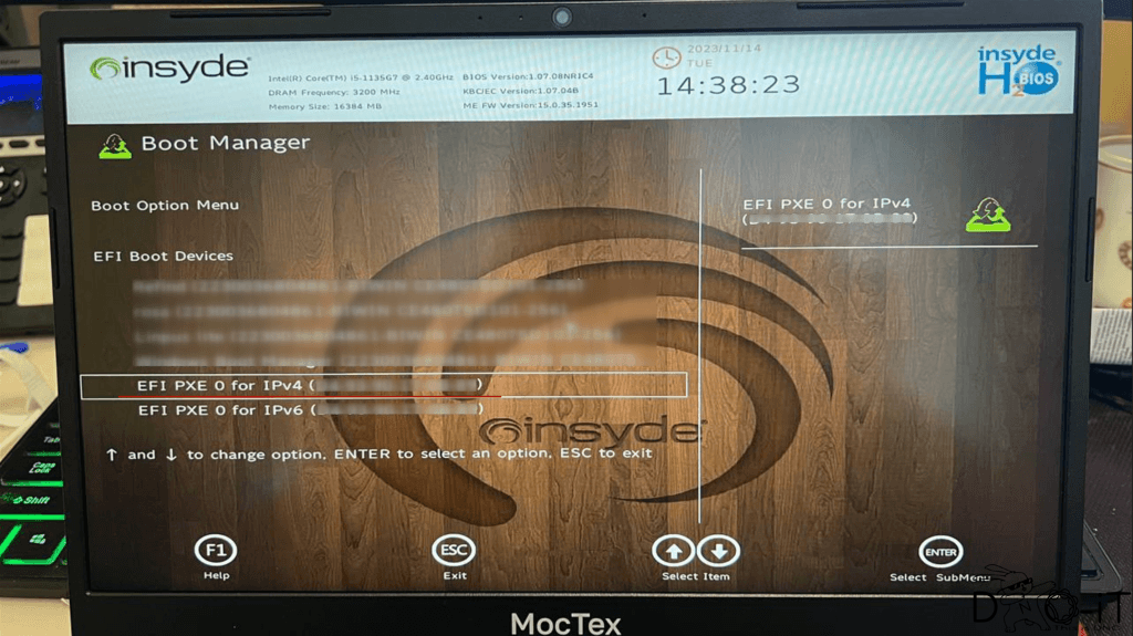 8) После перезагрузки ноутбука жмите F7 и укажите загрузку с EFI PXE 0 for IPv4
