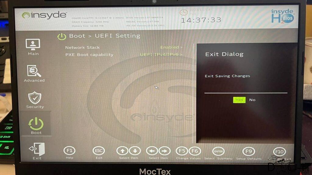 Для установки МОС 12 по PXE на ноутбук Мостех (Clevo) выполните следующие действия: