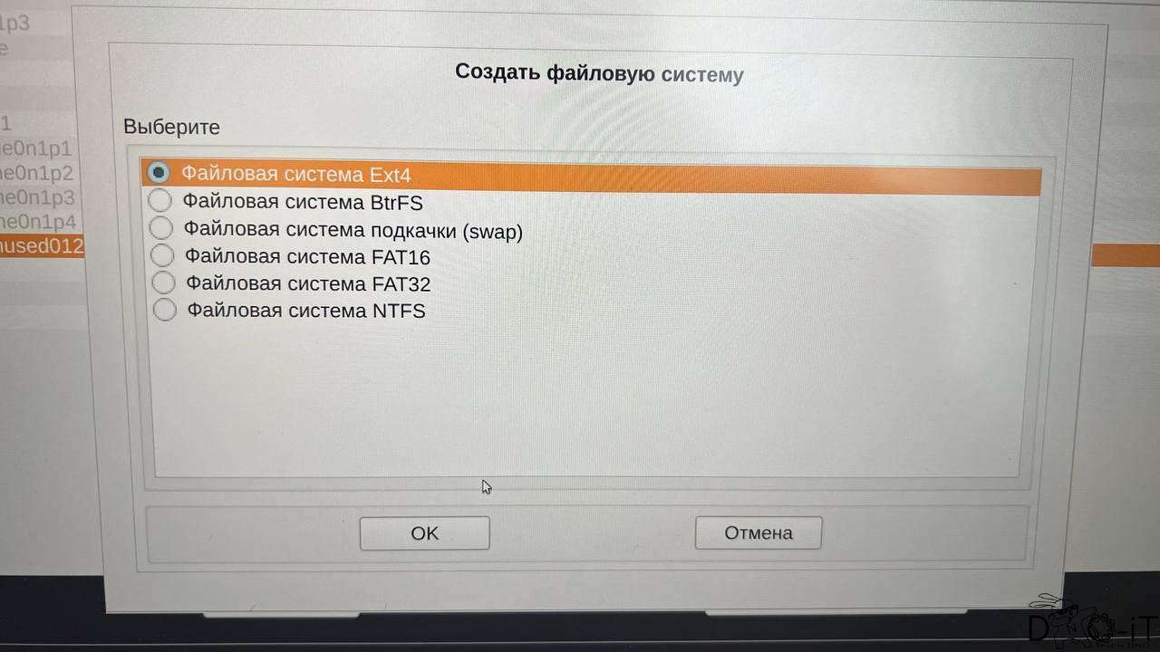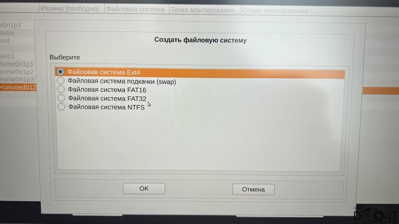 - Далее указываете Файловую систему Ext4