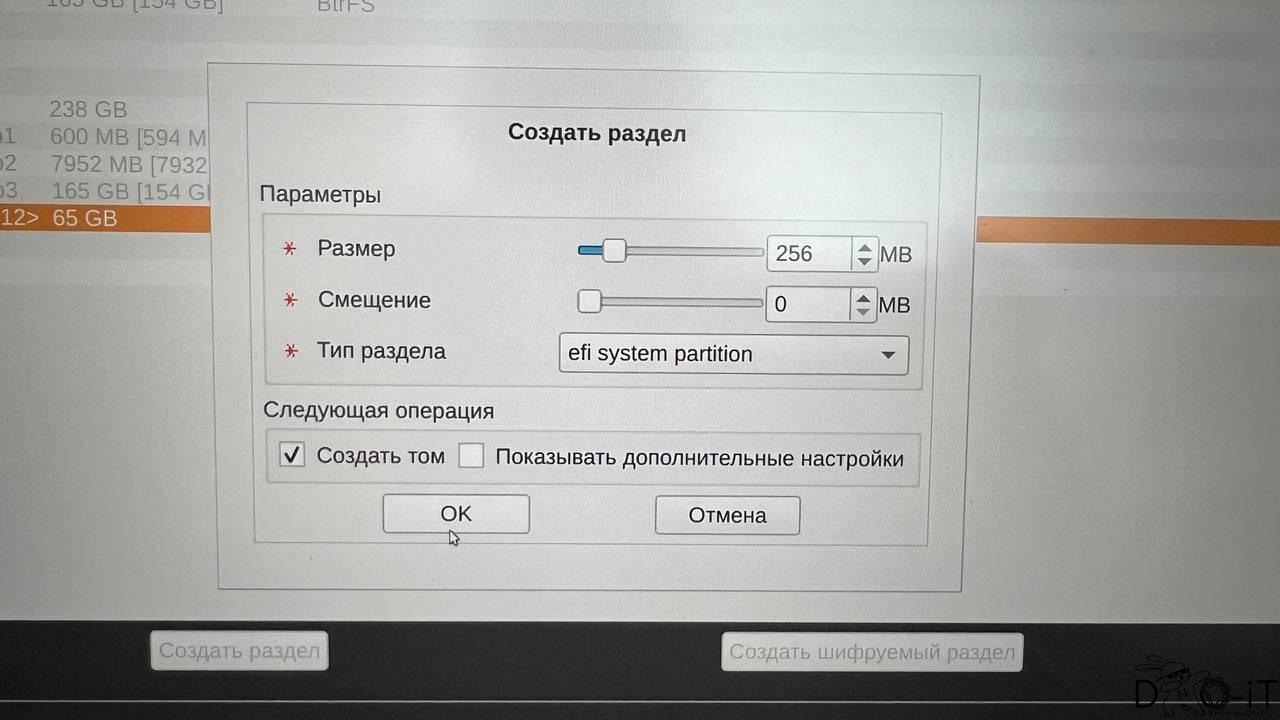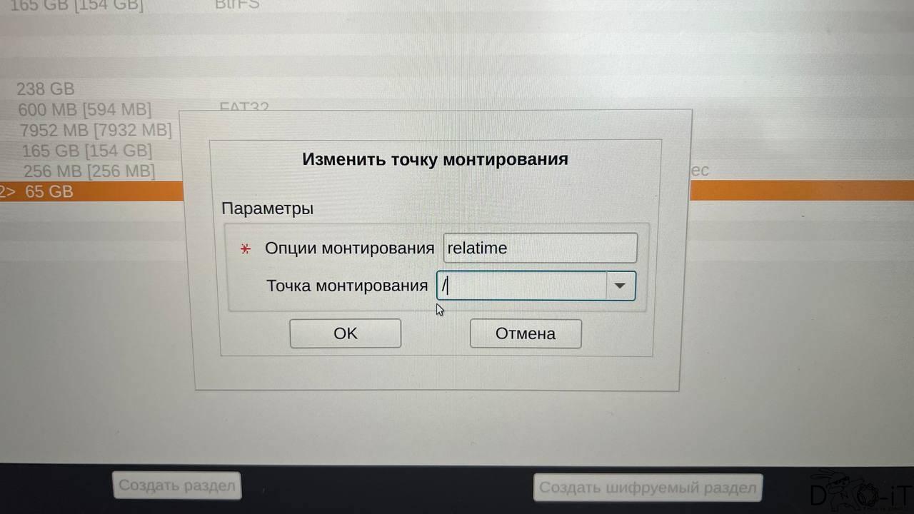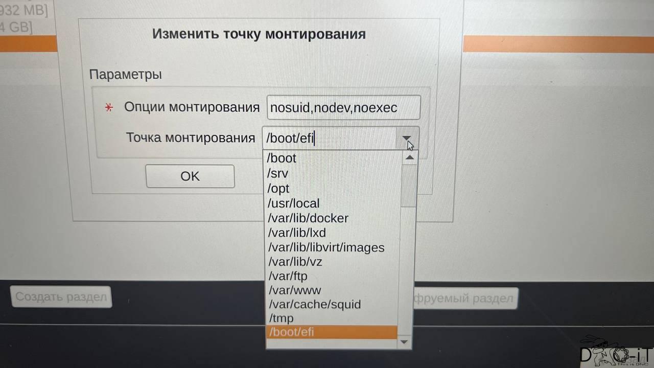И укажите, что это точка монтирования «/boot/efi»
