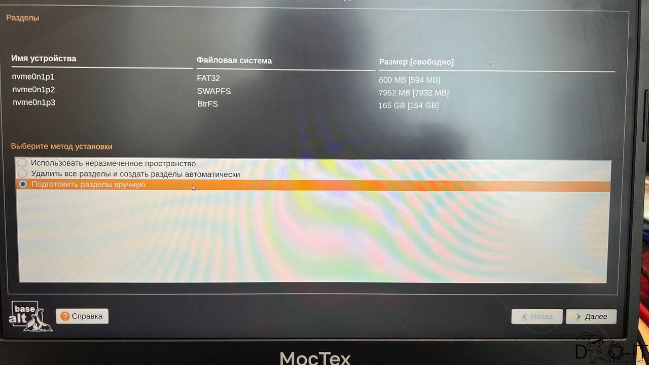3) Выбираем пункт «Подготовить разделы вручную».