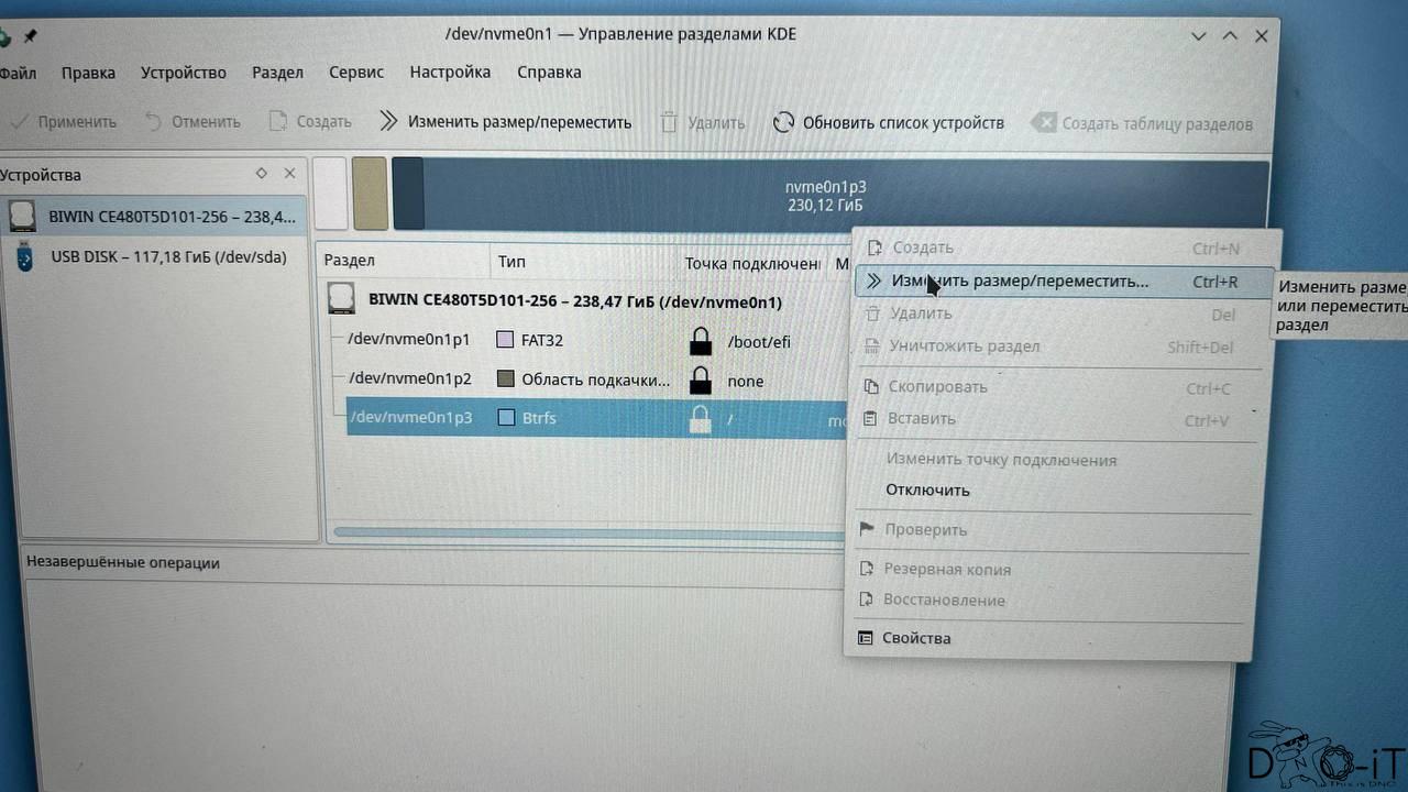- Выделяем раздел с mos os, нажимаем правой кнопкой и выбираем «Изменить размер / переместить».