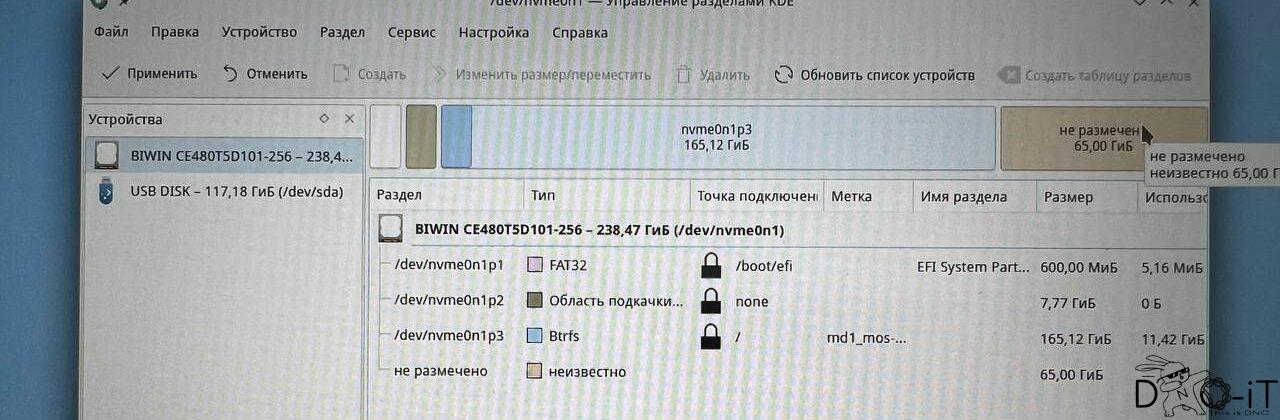 - В пуске ищем программу «Диспетчер разделов от KDE»