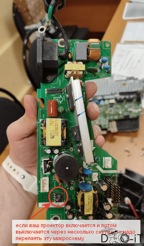 Микросхема что надо перепаять, если проектор включается, а потом гаснет через несколько секунд: