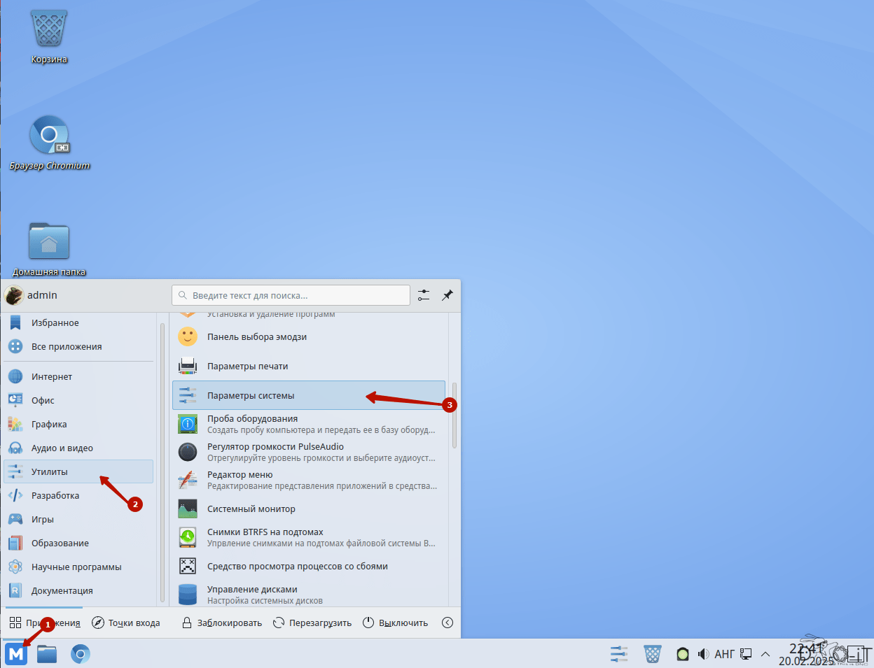 1) Перейдите в меню «Утилиты» и выберите «Параметры системы»