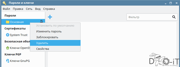 Нажимаем правой кнопкой мыши на необходимый пароль и выбираем «Удалить».