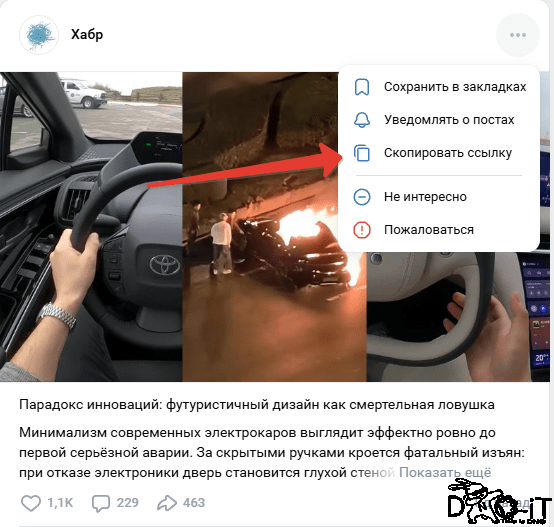 - Скопируйте и откройте ссылку на любой пост в ВК