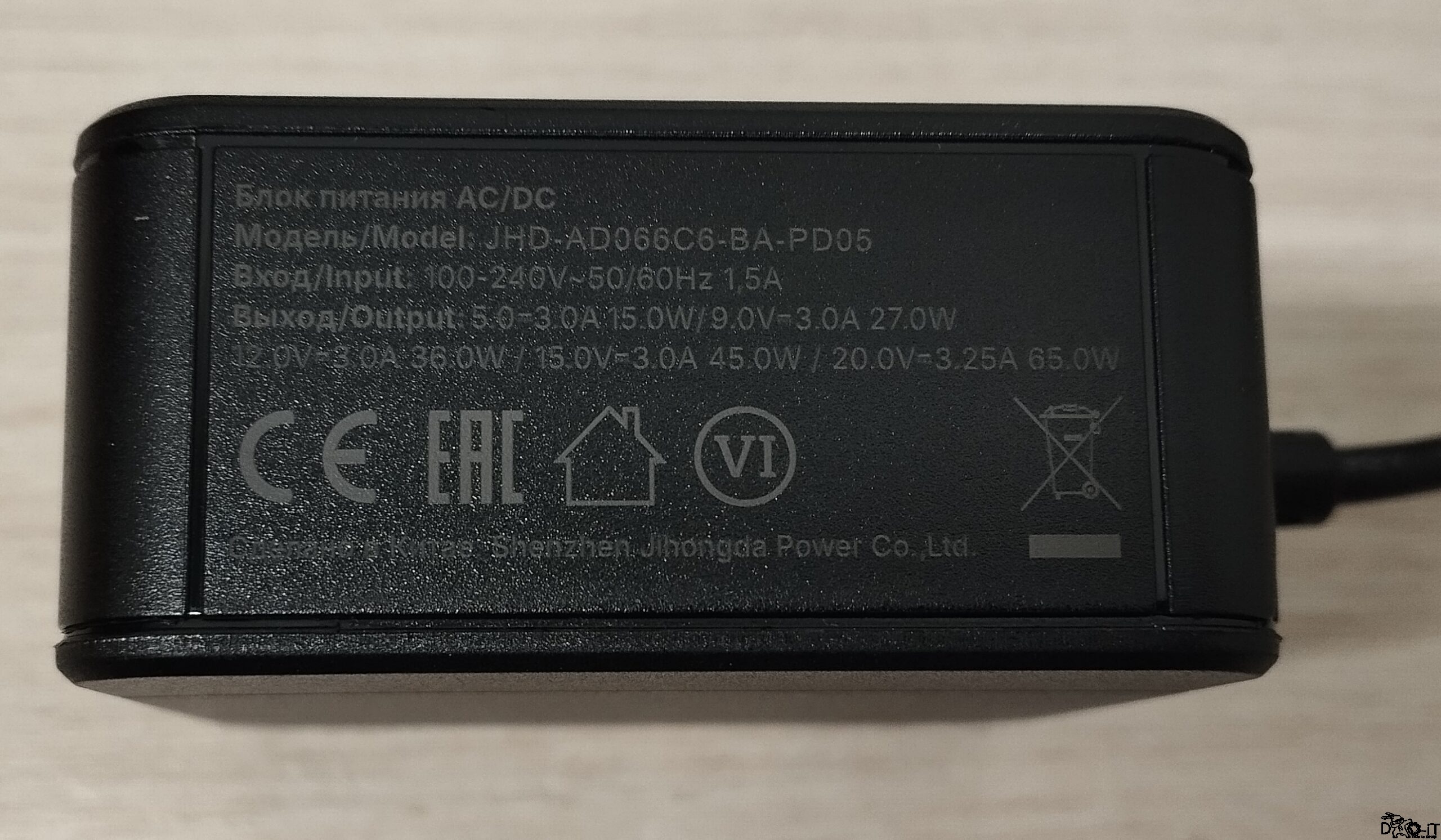 - З/у: Блок питания с разъемом Type-C 65 Вт (есть дырка под обычный БП, например универсальный на 19В)