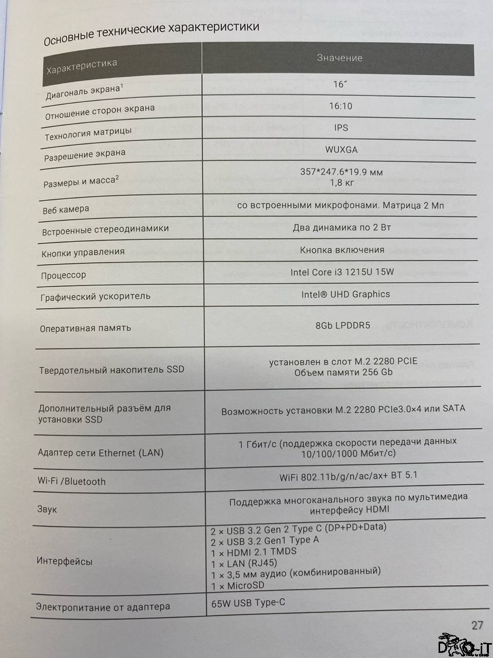 - Процессор: Intel Core i3-1215U